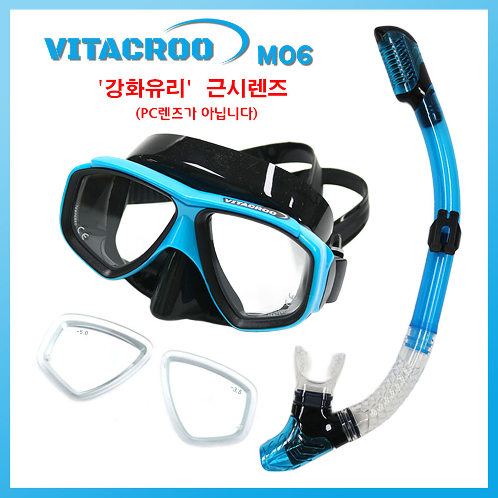 VITACROO-M06 청소년용 (민트블루) 도수스노쿨링마스크 도수용다이빙마스크 좌우도수짝알 주문가능 익일도착