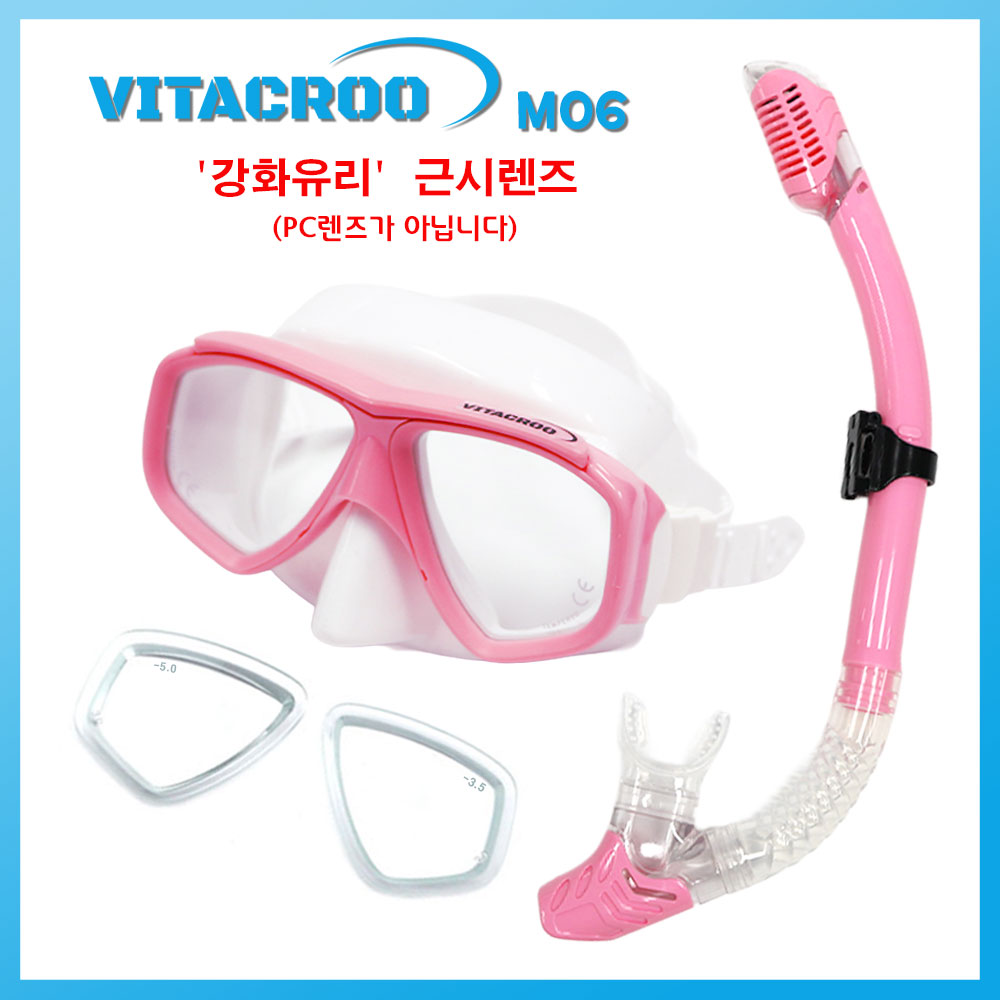 VITACROO-M06 (핑크) 도수스노쿨링마스크 도수용다이빙마스크 좌우도수짝알 주문가능 익일도착