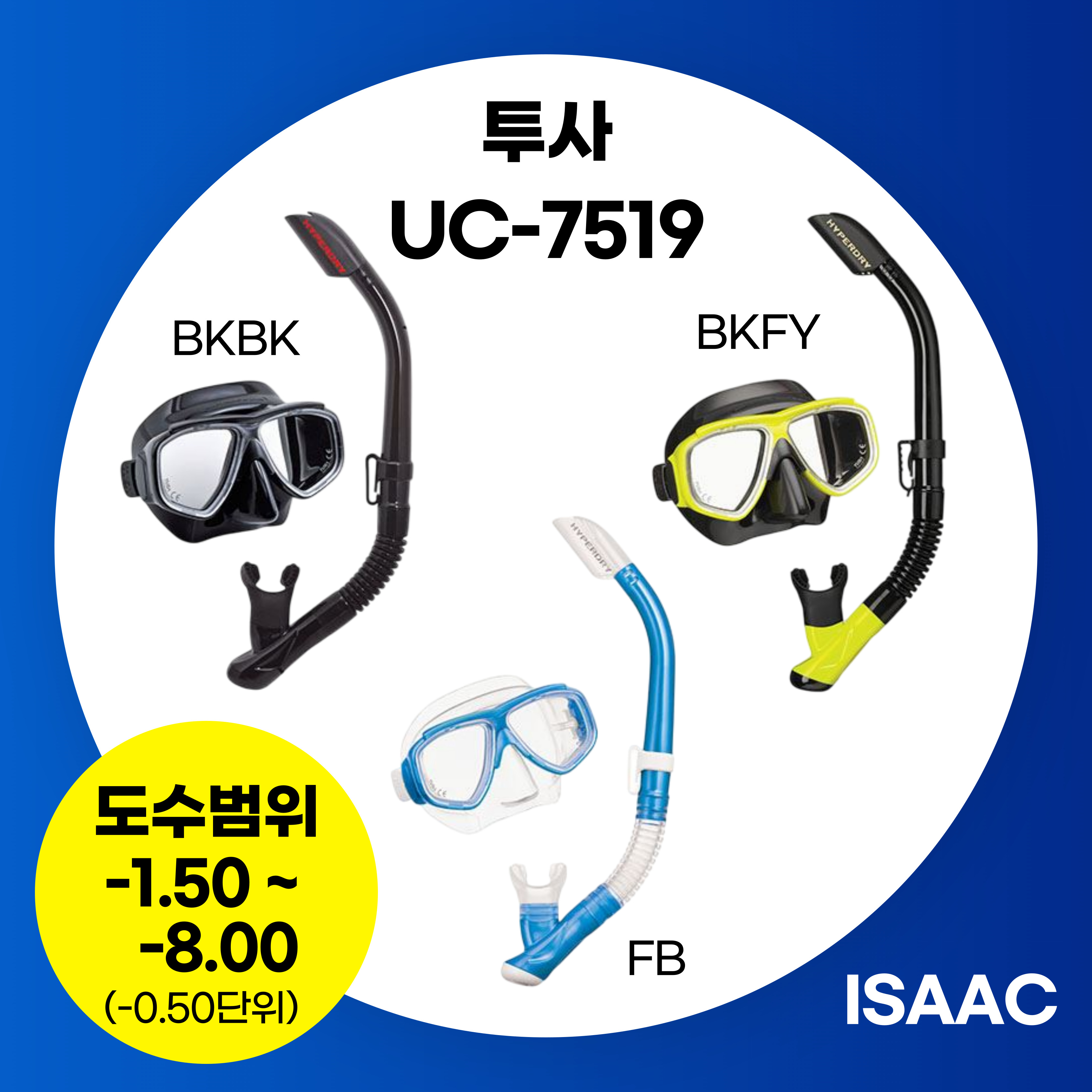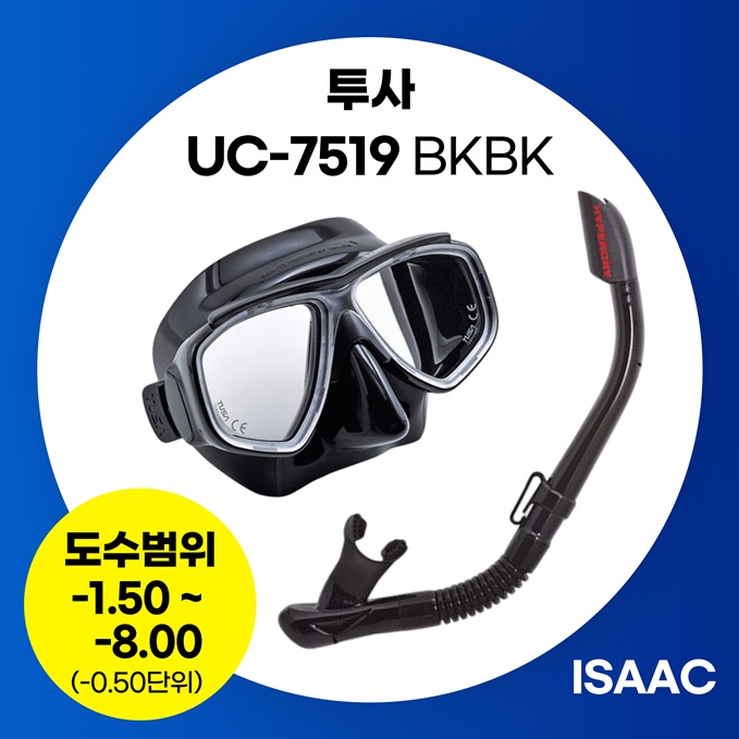 투사 UC-7519 / TUSA UC-7519 / 2안식 스노클링 기성 도수용 마스크 -1.50 ~ -8.00까지 -0.50단위 (좌우도수 구분가능)
